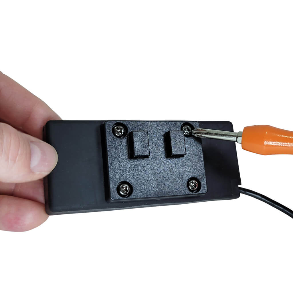 Once the shell is installed locate the dual-t back plate and screws and attach the plate to the back of the display. This plate will match up with the female plate that is used on the mounting accessory.